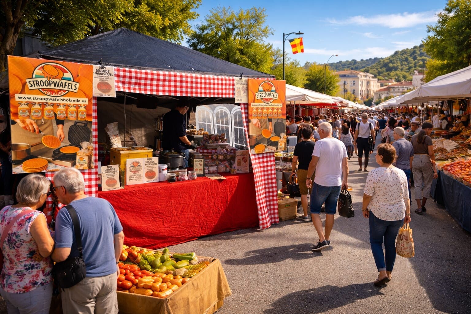 En estos mercados preparamos nuestras stroopwafels frescas, permitiendo que los visitantes disfruten del auténtico sabor de Holanda.