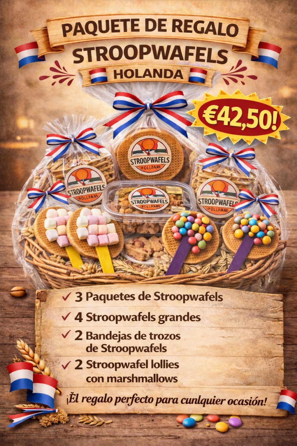 ¿Buscas un regalo original y delicioso? Con nuestro exclusivo Cadeaupakket Stroopwafels Holanda regalas un pedacito de la auténtica tradición y calidez holandesa. Perfecto para cumpleaños, celebraciones, agradecimientos o regalos de empresa.